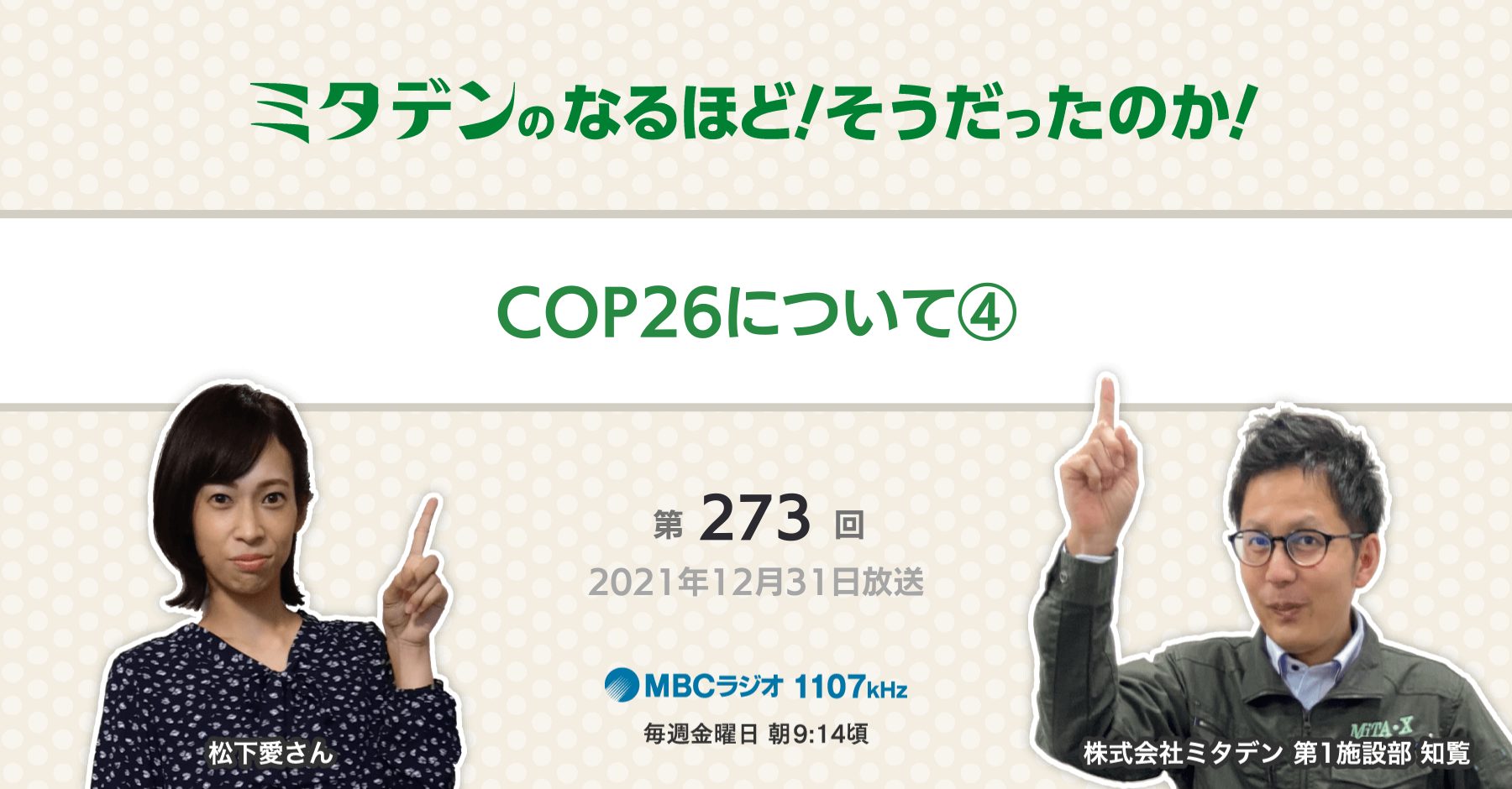 COP26について④ COP26について④ 第273回 2021年12月31日放送 なるそうのtwitterをフォローして最新情報をチェック! Twitter 今週のお便り COP26について④ では、今週も先週に引き続きCOP26についてお話ししますね! パリ […] 続きを読む